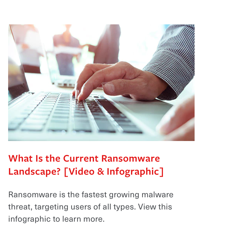 Ransomware is the fastest growing malware threat, targeting users of all types — from the home user to the corporate network. It can lead to temporary or permanent loss of sensitive or proprietary information, disruption to regular operations, financial losses incurred to restore systems and files, and potential harm to an organization’s reputation.